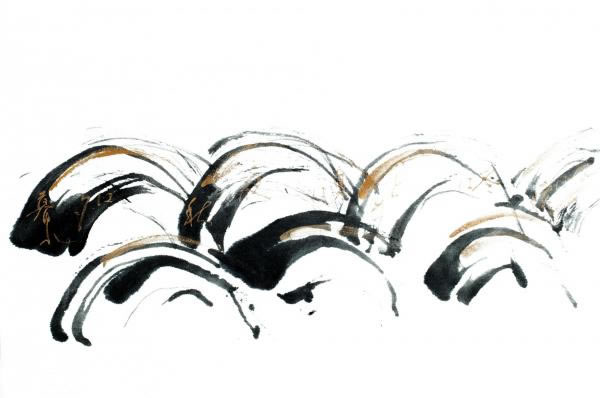 書道は自己表現の一つの手段だと言いながら、日本にいる間は師匠のコピーのような書、決まった型から抜け出せない自分がいました。